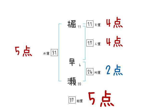 掘早瀬さんの画数の鑑定結果