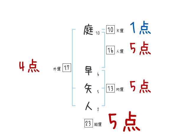 庭早矢人さんの画数の鑑定結果