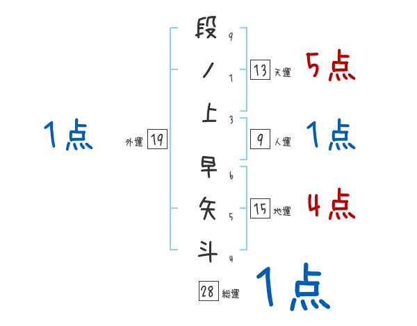 段ノ上早矢斗さんの画数の鑑定結果