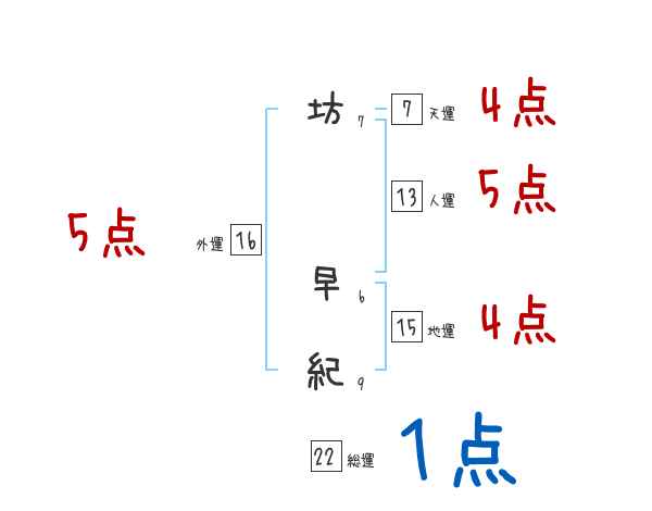 坊早紀さんの画数の鑑定結果