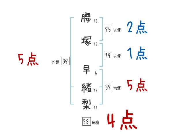 腰塚早緒梨さんの画数の鑑定結果