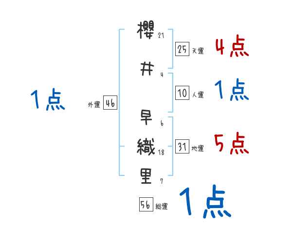 櫻井早織里さんの画数の鑑定結果