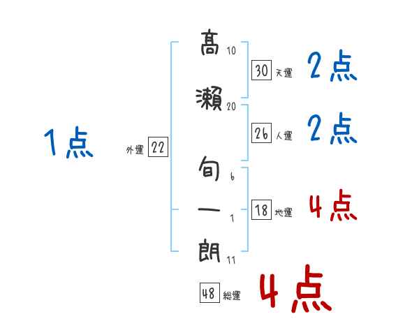 総運![]() | 髙瀨旬一朗さんの総運は48画の4つ星!賢明な性格で人望が厚い。指導力があり多くの人に尊敬される。 あなたの人生を表す1番重要な運勢です。生涯を通じて影響する総合運となり、主に50歳以降の晩年期に影響を及ぼします。 |