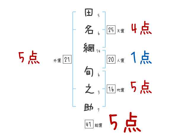 田名網旬之助さんの画数の鑑定結果
