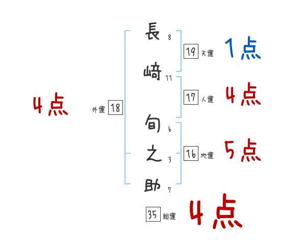 地運![]() | 長﨑旬之助さんの地運は16画の5つ星!人望が厚く大きく発展する。逆転成功が見える。 個性を表す基礎的な運勢です。性格形成や対人関係、行動力など家庭環境に影響されます。主に誕生してから20歳くらいまでの若年期の運勢を表します。 |