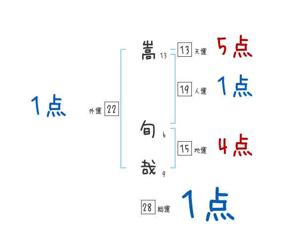 総運![]() | 嵩旬哉さんの総運は28画の1つ星!家庭環境に注意。スポーツで活躍できる能力があるかも。 あなたの人生を表す1番重要な運勢です。生涯を通じて影響する総合運となり、主に50歳以降の晩年期に影響を及ぼします。 |