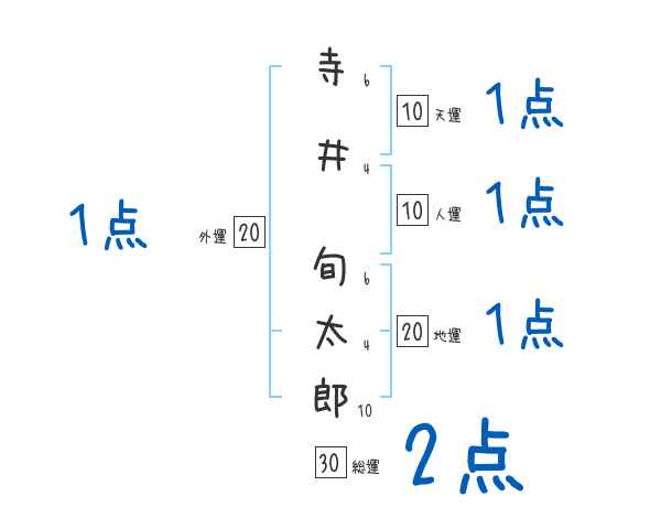 総運![]() | 寺井旬太郎さんの総運は30画の2つ星!浮き沈みの激しさに注意しましょう。 あなたの人生を表す1番重要な運勢です。生涯を通じて影響する総合運となり、主に50歳以降の晩年期に影響を及ぼします。 |