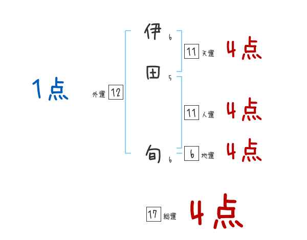 伊田旬さんの画数の鑑定結果