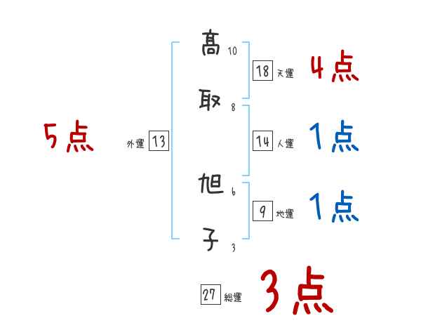 髙取旭子さんの画数の鑑定結果