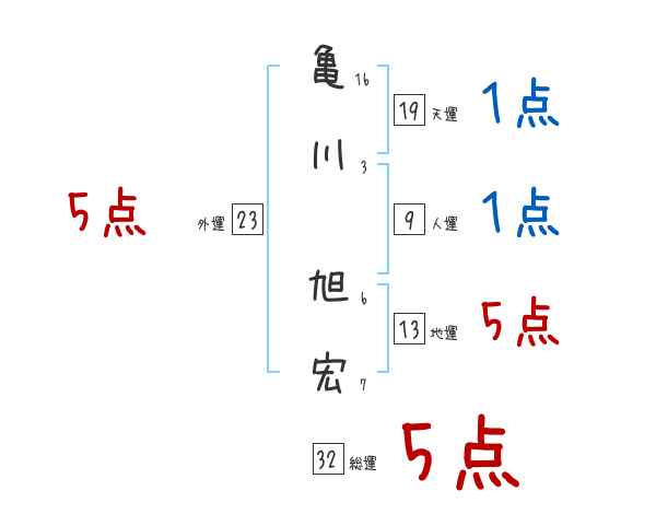 亀川旭宏さんの画数の鑑定結果