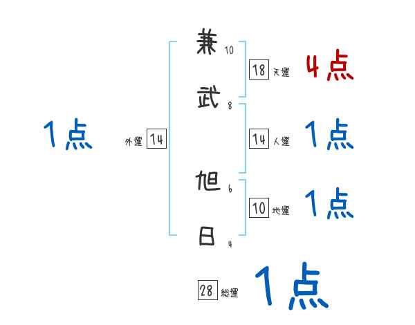 兼武旭日さんの画数の鑑定結果