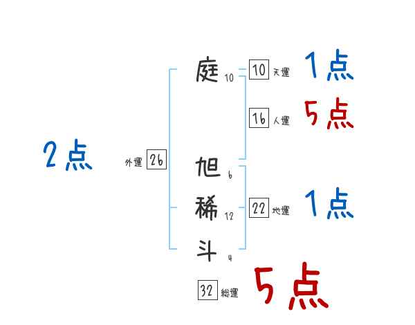 庭旭稀斗さんの外運は26画の2つ星