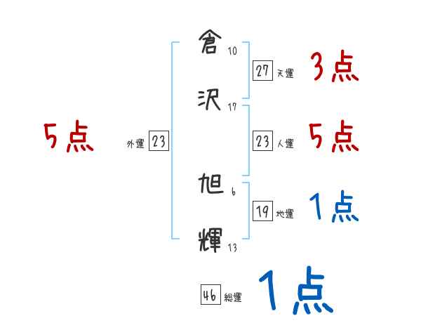 倉沢旭輝さんの画数の鑑定結果