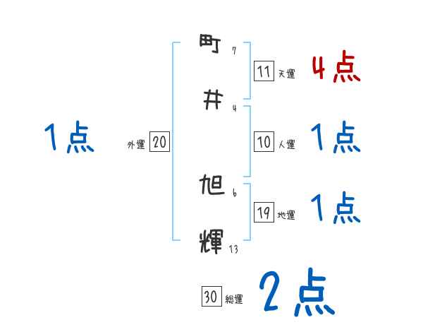 町井旭輝さんの画数の鑑定結果
