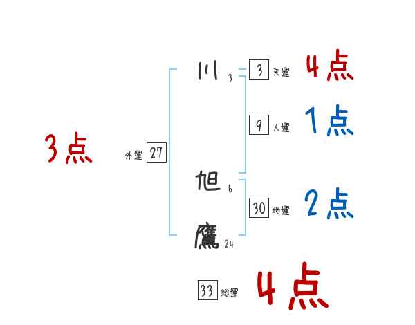 川旭鷹さんの画数の鑑定結果