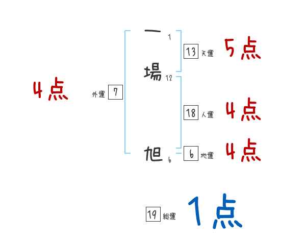 一場旭さんの画数の鑑定結果