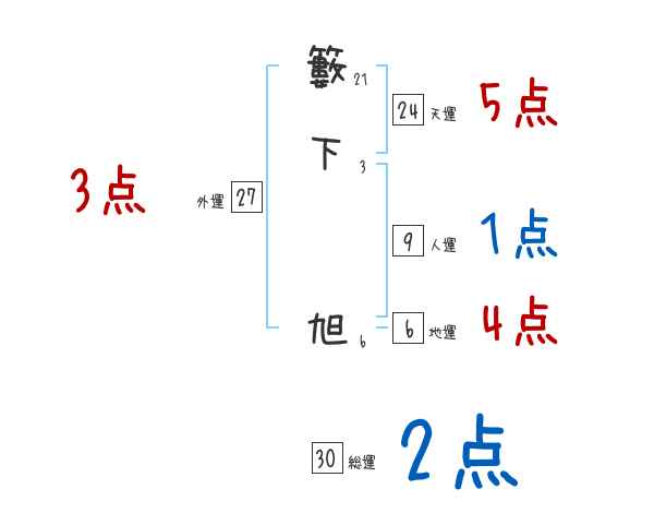 籔下旭さんの画数の鑑定結果
