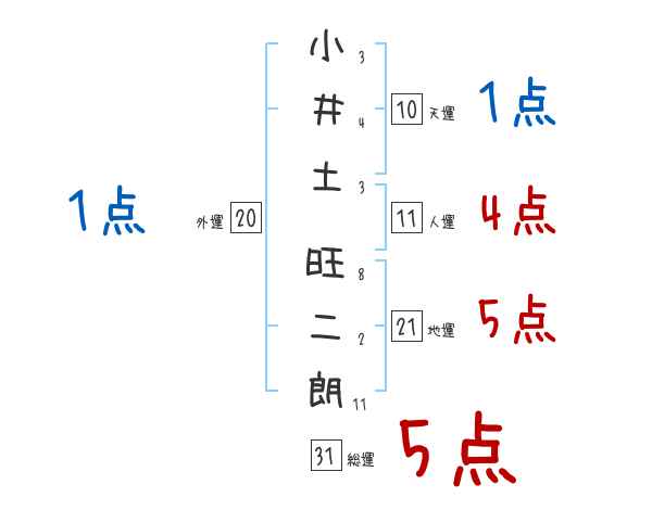 地運![]() | 小井土旺二朗さんの地運は21画の5つ星!統率力がある。独立し成功する。名誉を手に入れる。 個性を表す基礎的な運勢です。性格形成や対人関係、行動力など家庭環境に影響されます。主に誕生してから20歳くらいまでの若年期の運勢を表します。 |