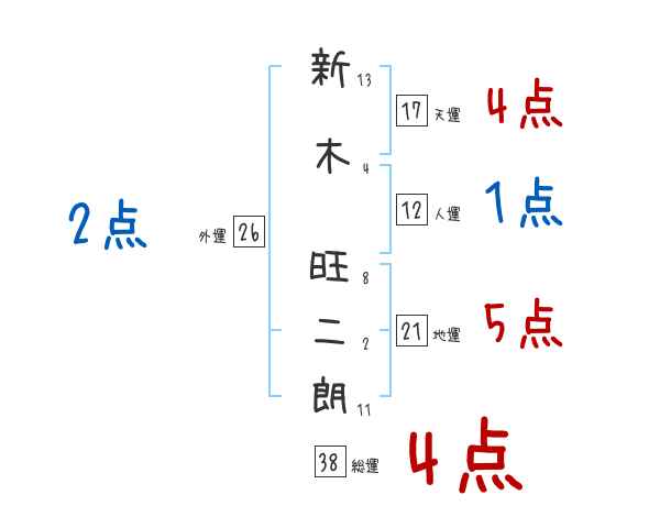 新木旺二朗さんの画数の鑑定結果