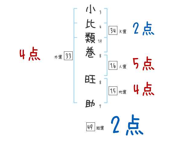 小比類巻旺助さんの画数の鑑定結果