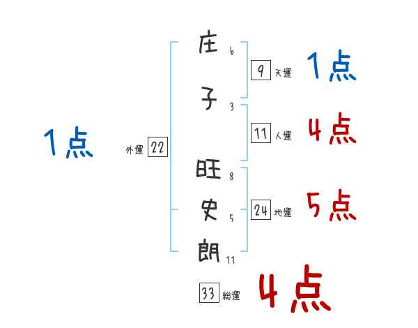 庄子旺史朗さんの画数の鑑定結果