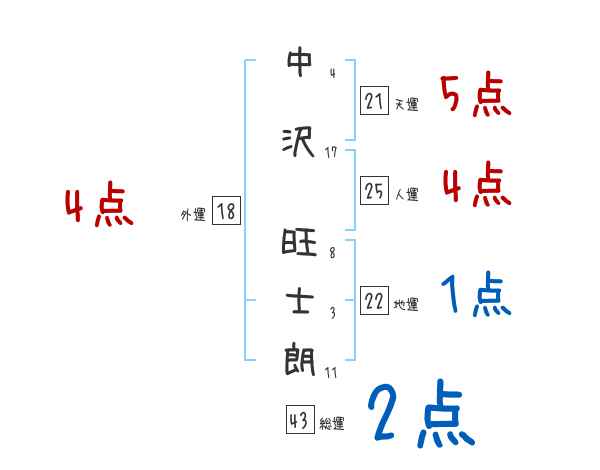 中沢旺士朗さんの画数の鑑定結果