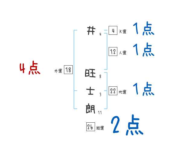 天運![]() | 井旺士朗さんの天運は4画の1つ星!感情が不安定で苦労するかも。周囲との協調を心掛けましょう。 家系が持つ宿命的な運勢を表します。祖先から受け継いだ苗字ですので自分の力が及びません。家柄を象徴します。 |