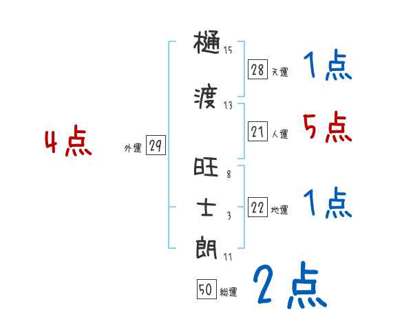 樋渡旺士朗さんの画数の鑑定結果