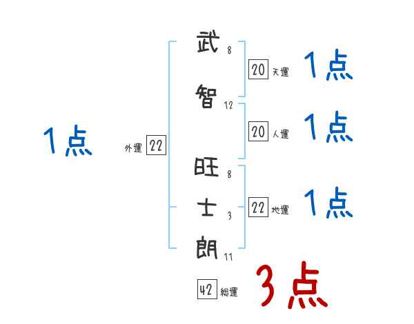 総運![]() | 武智旺士朗さんの総運は42画の3つ星!病気に注意。多芸であるが消極的でおとなしい。 あなたの人生を表す1番重要な運勢です。生涯を通じて影響する総合運となり、主に50歳以降の晩年期に影響を及ぼします。 |