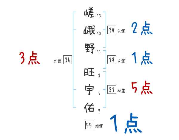 嵯峨野旺宇佑さんの画数の鑑定結果