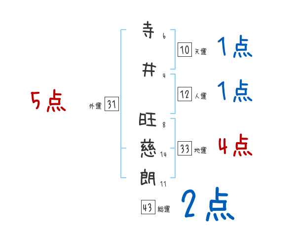 寺井旺慈朗さんの画数の鑑定結果