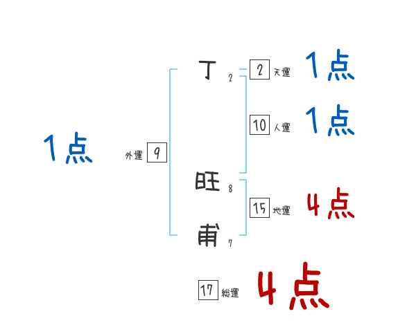 総運![]() | 丁旺甫さんの総運は17画の4つ星!積極的な行動力。地位を気づき財産を手に入れる。純粋な心と直感力。 あなたの人生を表す1番重要な運勢です。生涯を通じて影響する総合運となり、主に50歳以降の晩年期に影響を及ぼします。 |