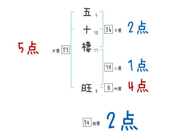 五十棲旺さんの画数の鑑定結果