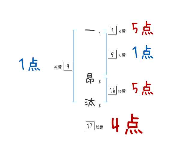 天運![]() | 一昂汰さんの天運は1画の5つ星!行動力、指導力があり出世し繁栄する。幸運に恵まれる。 家系が持つ宿命的な運勢を表します。祖先から受け継いだ苗字ですので自分の力が及びません。家柄を象徴します。 |
