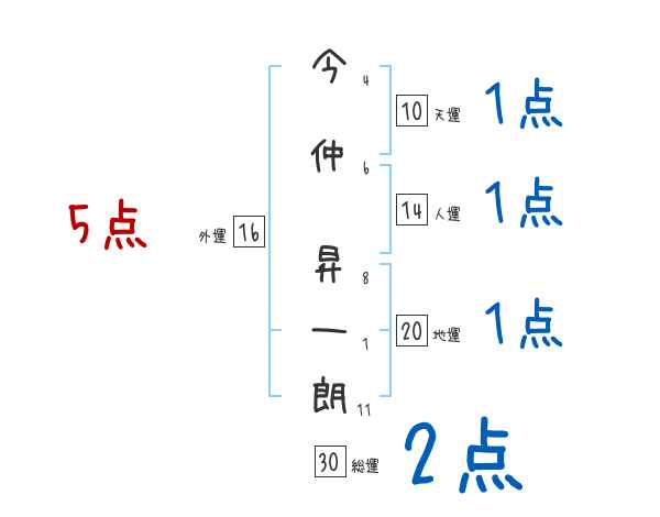 外運![]() | 今仲昇一朗さんの外運は16画の5つ星!人望が厚く大きく発展する。逆転成功が見える。 生活面を象徴する運勢です。外部から受ける影響力を表し、結婚運、家庭運や職場、環境への順応性を表します。 |