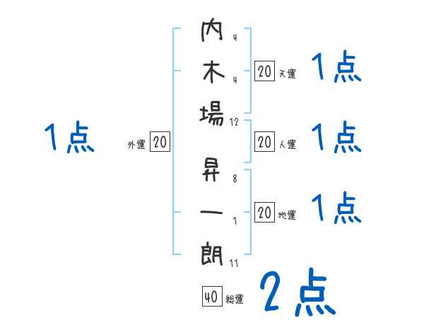 総運![]() | 内木場昇一朗さんの総運は40画の2つ星!自信過剰で物事に固執するためトラブルに注意。 あなたの人生を表す1番重要な運勢です。生涯を通じて影響する総合運となり、主に50歳以降の晩年期に影響を及ぼします。 |