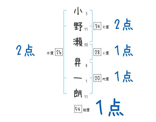 小野瀬昇一朗さんの画数の鑑定結果