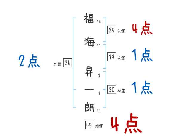 福海昇一朗さんの画数の鑑定結果