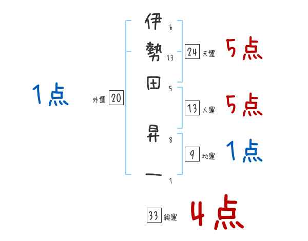 伊勢田昇一さんの画数の鑑定結果