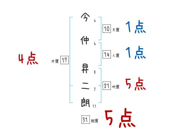 今仲昇二朗さんの画数の鑑定結果