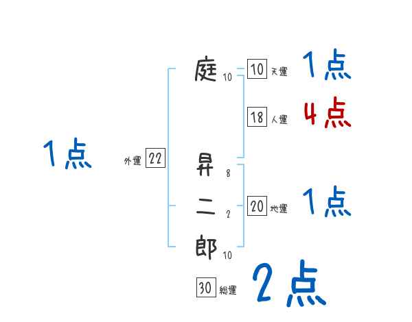 庭昇二郎さんの画数の鑑定結果