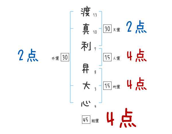 天運![]() | 渡真利昇大心さんの天運は30画の2つ星!浮き沈みの激しさに注意しましょう。 家系が持つ宿命的な運勢を表します。祖先から受け継いだ苗字ですので自分の力が及びません。家柄を象徴します。 |