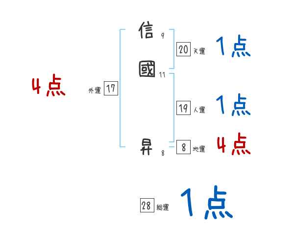 信國昇さんの画数の鑑定結果