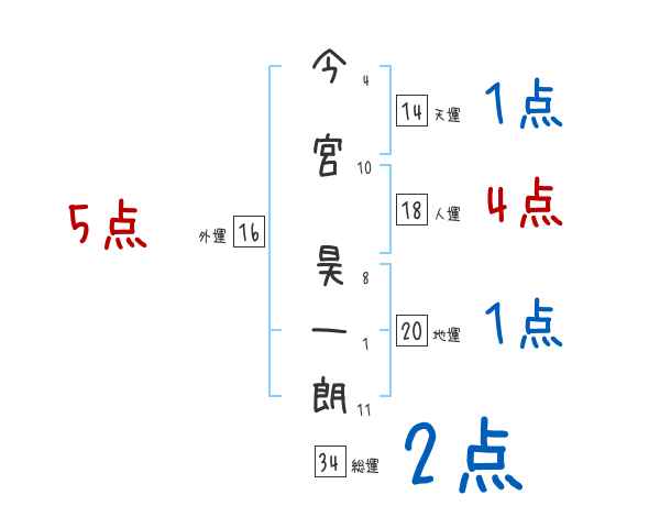 今宮昊一朗さんの画数の鑑定結果