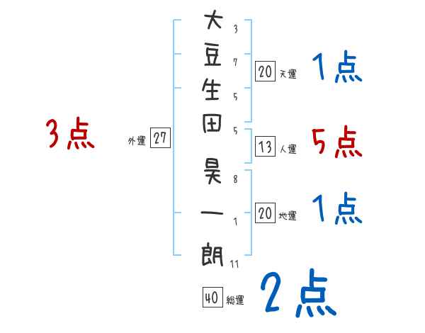 大豆生田昊一朗さんの画数の鑑定結果