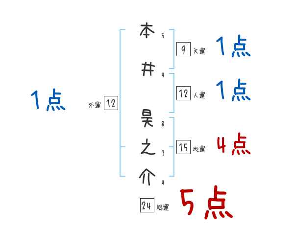 本井昊之介さんの画数の鑑定結果