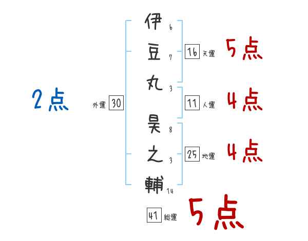伊豆丸昊之輔さんの画数の鑑定結果
