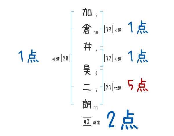加倉井昊二朗さんの画数の鑑定結果