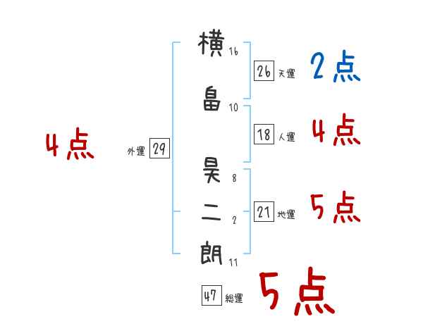 横畠昊二朗さんの画数の鑑定結果