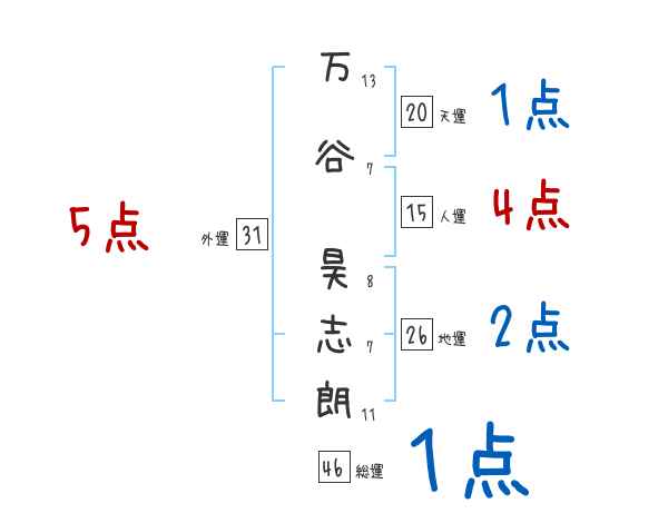 万谷昊志朗さんの画数の鑑定結果